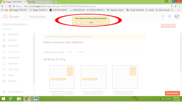 penghasilan anda dan silahkan Menyimpan Setelan Penghasilan Adsense anda.